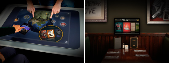 Mais attendez, ce n’est pas tout ! Quand je vous dis que le Hard Rock Cafe aime le multi-touch c’est qu’il aime VRAIMENT le multi-touch ! En effet l’agence en marketing et publicité américaine Duncan/Channon qui a d’ailleurs participé à l’élaboration de ce mur tactile géant, vient également de dévoiler en vidéo 3 nouvelles interfaces multi-tactiles développées spécialement pour le Hard Rock Cafe. Deux sont des applications pour Surface, la table interactive multi-touch et multi-utilisateurs. La troisième est une sorte de juke box multimédia tactile. Voyez donc par vous même :
