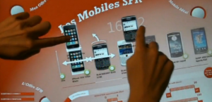 Si vous aimez les interfaces tactiles MultiTouch et que vous avez l’occasion d’aller faire un tour au Flagship SFR des Champs-Elysées à Paris, et bien sachez que vous pourrez tester deux applications MultiTouch développées par la société toulousaine Intuilab. La première est une application sur borne tactile (tournant sous Windows 7 et équipée d’un écran MultiTouch 3M) dont le but est de présenter et de vendre l’offre SFR mobiles et forfaits. La seconde qui concerne quand à elle l’offre Internet à la Maison de SFR, est accessible depuis une table tactile Microsoft Surface.