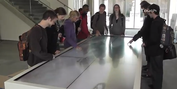Plus l’écran est grand, plus il attire l’attention ! Il s’agit là d’une réalité absolument indéniable, et ce, que ce soit pour les écrans positionnés à la verticale (en mode mur interactif), légèrement inclinés (en mode pupitre ou borne tactile) ou encore posés à l’horizontal (en mode table MultiTouch). En revanche, il ne faut pas oublier que pour interagir à l’aide de ses doigts sur un écran, l’utilisateur doit forcément se positionner à proximité de celui-ci. Donc, attention quand même à ne pas voir trop grand non plus au risque de réduire drastiquement le confort d’usage, et par là, diminuer le pouvoir d’engagement des écrans tactiles en Out Of Home.